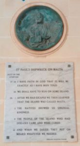 This Church is a tribute to St Paul, as far as I could find out, nothing specifically happened here with regards to Paul’s final mission. However, there is a sign saying that Malta has a St Paul celebration day on the 10th February. The 10th February is linked with the laying of the foundation stone of St Paul’s Tower that is near this church. Again, nothing to do with Paul’s mission.